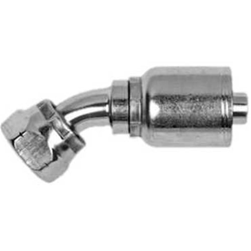 HYDRAULIC HOSE CRIMP COUPLING - Swept 45 Elbow x BSP Female Swivel