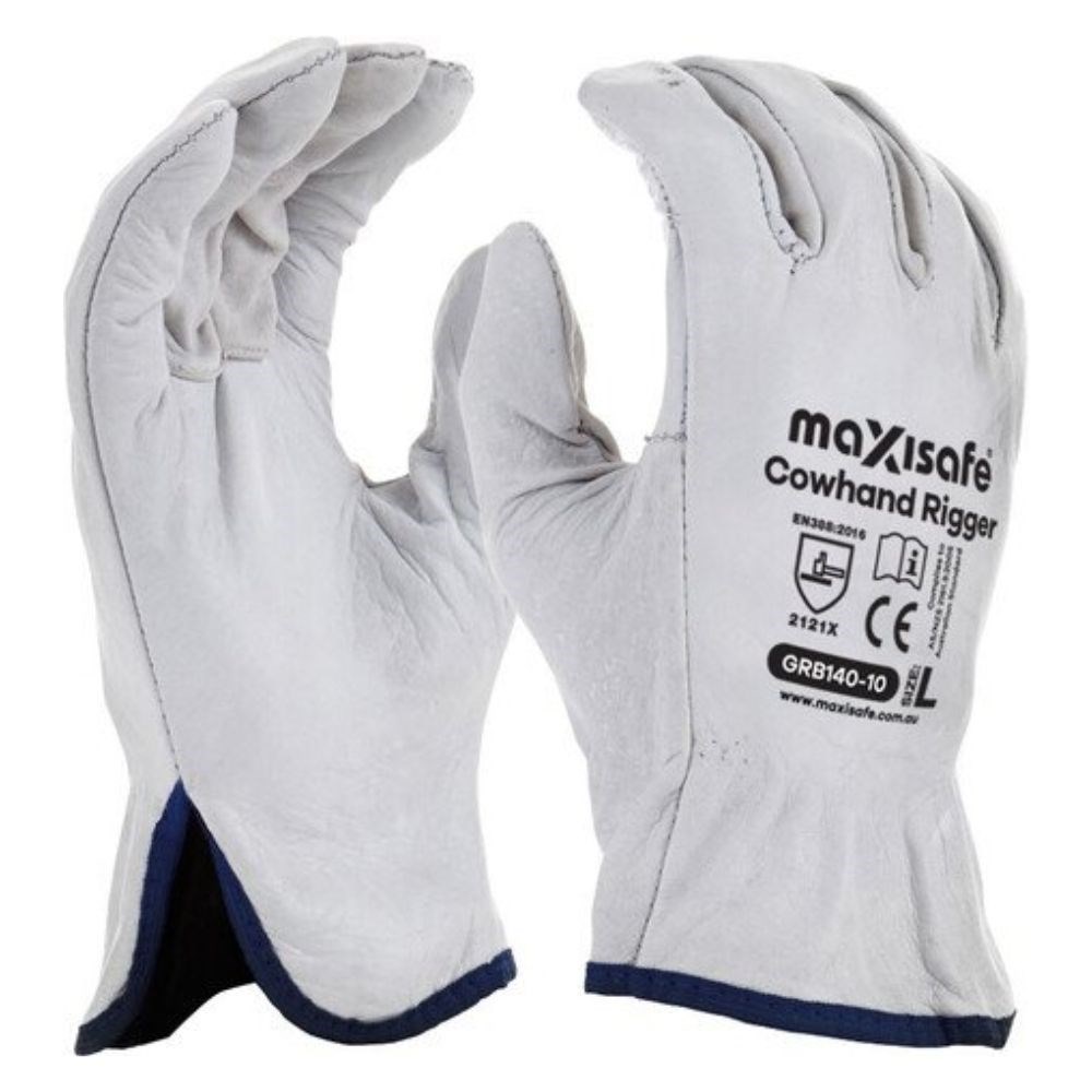 MAXISAFE - NATURAL FULL-GRAIN LEATHER RIGGER GLOVES MEDIUM