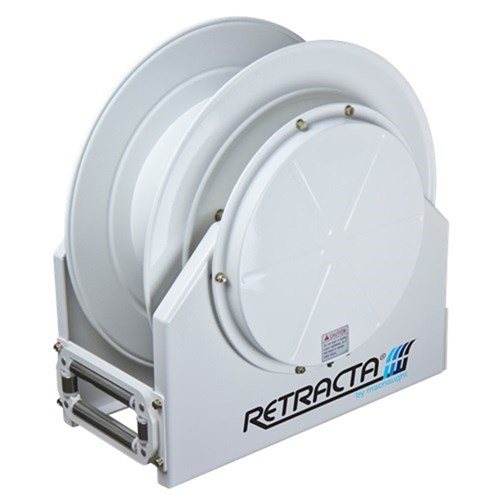 RETRACTA Cradle frame spring rewind Oil/Water/Air reel - BARE. Hose capacity 15m of 1 1/2" Oil/Water/Air hose